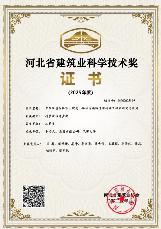 近日,由華南公司牽頭,聯(lián)合天津大學(xué)共同完成的“巖溶地質(zhì)條件下大坡度小半徑近接隧道盾構(gòu)施工技術(shù)研究與應(yīng)用”項目,榮獲河北省建筑業(yè)協(xié)會2025年度科學(xué)技術(shù)進(jìn)步獎二等獎。此項殊榮,標(biāo)志著華南公司在復(fù)雜地質(zhì)隧道施工技術(shù)領(lǐng)域取得了重大突破。