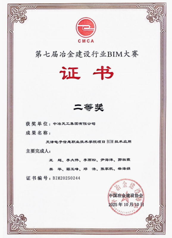近日,華南公司承建的天津電子信息職業(yè)技術(shù)學(xué)院產(chǎn)教融合實(shí)訓(xùn)基地項(xiàng)目,憑借出色的BIM技術(shù)應(yīng)用成果,榮獲中國(guó)冶金建設(shè)協(xié)會(huì)第七屆冶金建設(shè)行業(yè)BIM大賽二等獎(jiǎng)。