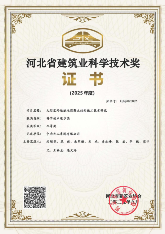 近日,從河北省建筑業(yè)協(xié)會官網(wǎng)獲悉,開物工程公司《大型室外造浪池混凝土結(jié)構(gòu)施工技術(shù)研究》成果獲2025年度河北省建筑業(yè)協(xié)會科學(xué)技術(shù)進(jìn)步獎二等獎。