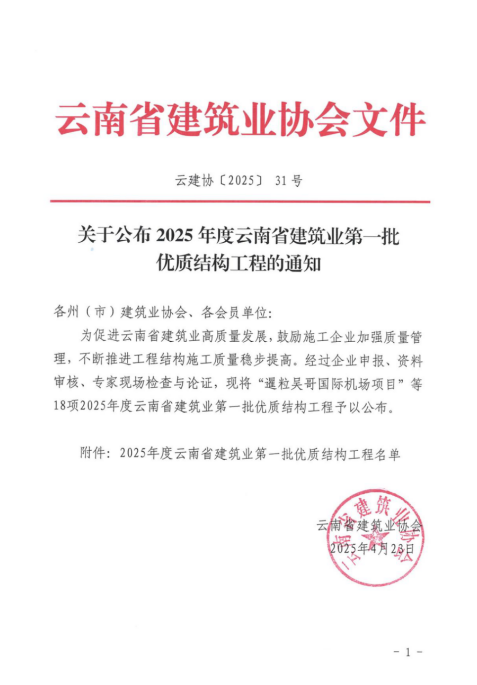 近日,云南省建筑業(yè)協(xié)會(huì)公布2025年度云南省建筑業(yè)第一批優(yōu)質(zhì)結(jié)構(gòu)工程名單,中冶天工承建的鎮(zhèn)雄縣以勒易遷后扶紡織服裝產(chǎn)業(yè)園建設(shè)項(xiàng)目、個(gè)舊電商貿(mào)易物流產(chǎn)業(yè)園建設(shè)項(xiàng)目、紅河州全域旅游綜合體建設(shè)項(xiàng)目、云南國(guó)際野生菌交易中心建設(shè)項(xiàng)目、曲靖市麒麟?yún)^(qū)七中南部新城校區(qū)(第八中學(xué))、麒麟?yún)^(qū)陽(yáng)光小學(xué)南岸校區(qū)(南岸小學(xué))建設(shè)項(xiàng)目榮獲“2025年度云南省建筑業(yè)第一批優(yōu)質(zhì)結(jié)構(gòu)工程”榮譽(yù)稱號(hào)。